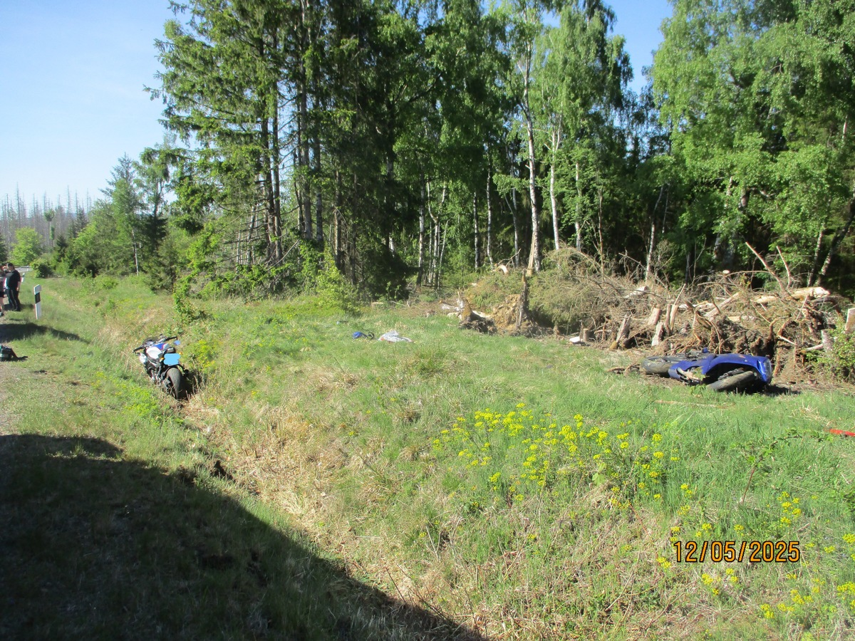Goslar - Am Montag, dem 12.05.2025 befahren zwei Kräder hintereinander die Bundesstraße 4 aus Rtg. Rothesütte kommend, in Richtung Hohegeiß. In einer Linkskurve vor der OL Hohegeiß kommt der erste Krad Fahrer, ein 24jähriger aus Sassenburg, mit seinem Krad BMW aufgrund vermutlich unangepasster Geschwindigkeit ins rutschen und kommt hierbei nach rechts von der Fahrbahn ab. Er fällt, bleibt dabei aber unverletzt. Der hinter ihm fahrende 19jährige aus Braunschweig ist hierdurch so erschrocken, dass er mit seinem Krad Yamaha ebenfalls nach rechts von der Fahrbahn rutscht und dabei zu Fall kommt. Er verletzt sich hierbei schwer und muss einem Krankenhaus zugeführt werden. An beiden Krädern entsteht ein Sachschaden jeweils in Höhe von ca. 5000 Euro.