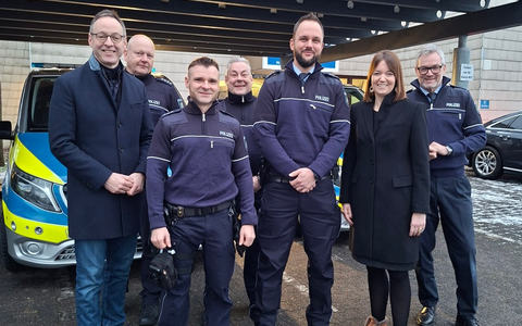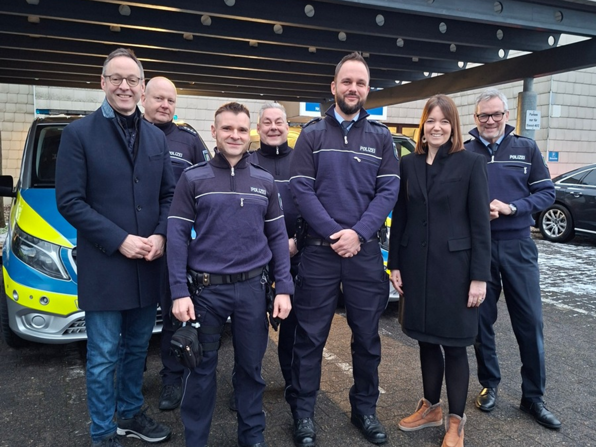 Landrätin Ina Laukötter begrüßte beide Bezirksdienstbeamte gemeinsam mit Bürgermeister Theo Mettenborg, Polizeidirektor Dirk Zeller und den direkten Vorgesetzten Erster Polizeihauptkommissar Oliver Ney und Polizeihauptkommissar Andreas Möllenhoff persönlich. Sie betonte, wie wichtig es für die Menschen in den Städten und Gemeinden ist, direkte Ansprechpartner zu haben.