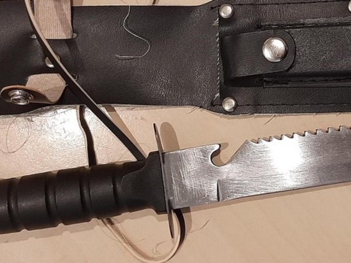 Der Tatverdächtige leerte seine Jackentaschen. Dabei kam neben dem Stehlgut auch ein Messer mit einer Klingenlänge von 15 cm zum Vorschein.