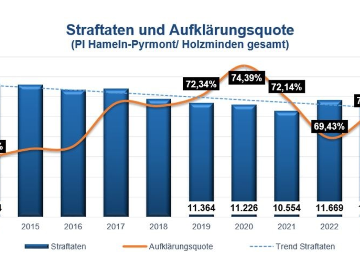 Auch in diesem Jahr liegt die Polizeiinspektion Hameln-Pyrmont/Holzminden mit einer AufklĂ€rungsquote von 71,19% nicht nur ĂŒber dem Nds. Landesdurchschnitt von 61,73%, sondern hat damit auch die landesweit beste AufklĂ€rungsquote.
