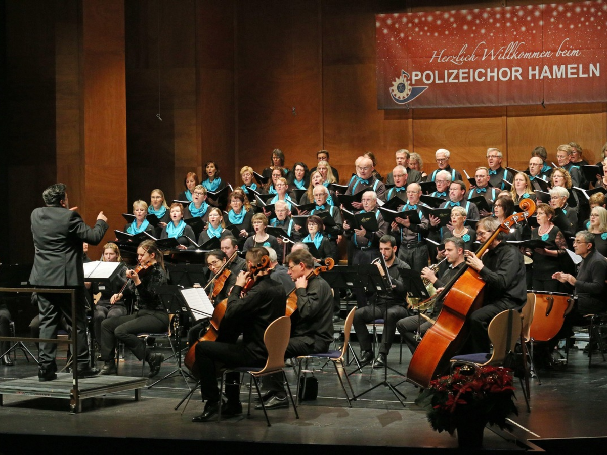 Als gemeinnütziger Verein leistet der Polizeichor Hameln einen wertvollen Beitrag mit der Durchführung von Benefiz-Konzerten. So konnten im Laufe der Jahre bereits über 62.000 Euro für wohltätige Zwecke überreicht werden. Darüber konnte sich u.a. die Evangelische Jugend der Marktkirchen- und Münster-Gemeinde Hameln und auch die Martin-Luther-Kirche freuen. Jetzt befindet sich der Polizeichor Hameln in der Vorbereitung auf sein Weihnachtskonzert. In diesem Jahr erwartet die Zuhörer etwas Besonderes. Unter dem Motto "Gemeinsam für Menschlichkeit" wird zusammen mit dem Polizeiorchester Niedersachsen ein festliches Benefiz-Konzert in der Rattenfänger-Halle Hameln durchgeführt.