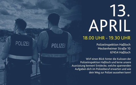 Bitte meldet Euch zu der Veranstaltung unter der E-Mail pihassloch.einstellungen@polizei.rlp.de oder unter Tel.-Nr. 06324 933-2605 an.