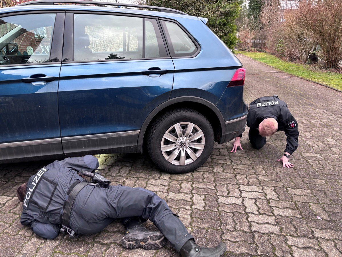 Die Polizei Tostedt hat gestern mit Unterstützung der Bereitschaftspolizei damit begonnen, entsprechende Fahrzeuge, die im Landkreis zugelassen sind, zu überprüfen (s. Foto). Weiterhin werden Aufnahmen einer Überwachungskamera ausgewertet, um möglicherweise den Fahrzeugtyp weiter eingrenzen zu können.