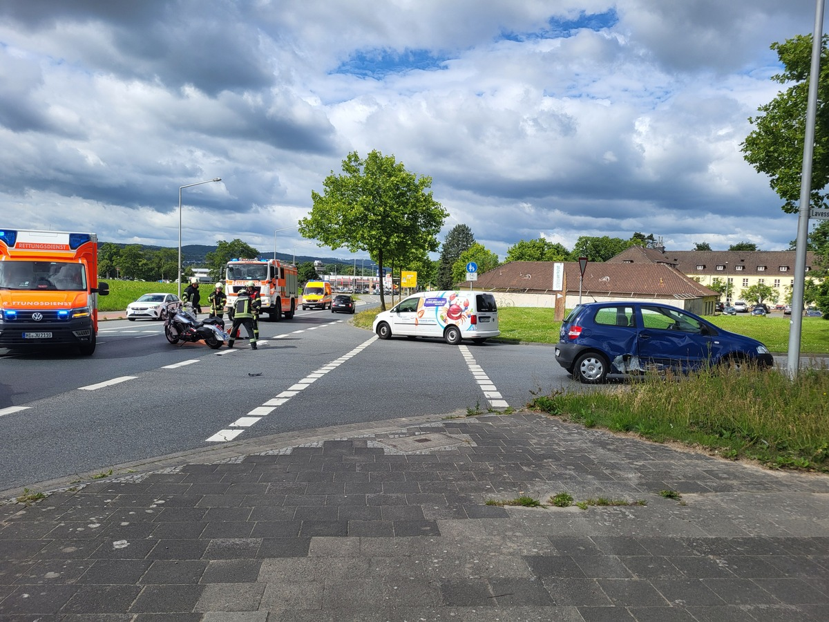 Der beteiligte Motorradfahrer wurde schwer verletzt. Er zog sich mehrere Frakturen und Prellungen zu und wurde durch einen Rettungswagen zur stationären Aufnahme in ein Hildesheimer Krankenhaus transportiert. Der Pkw-Fahrer blieb unverletzt. Am Pkw entstand wirtschaftlicher Totalschaden, die Schadens-Gesamtsumme wird auf 12.000 Euro geschätzt. Beide Fahrzeuge wurden abgeschleppt. Auslaufende Betriebsstoffe wurden durch die BF Hildesheim und ein beauftragtes Privatunternehmen beseitigt. Es kam zu geringen Beeinträchtigungen des Individualverkehrs.