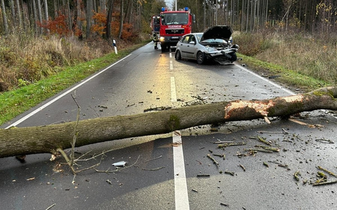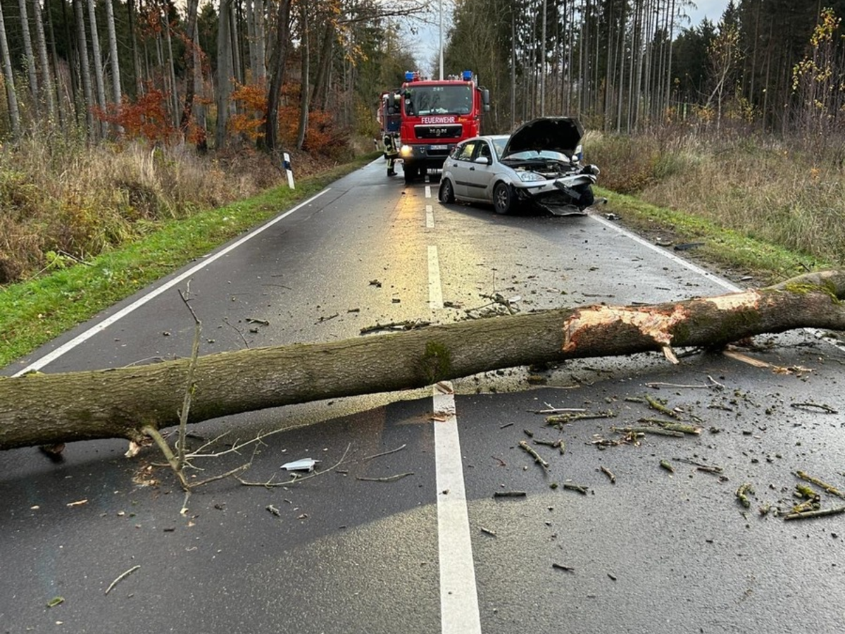 Baum fällt auf Straße - Verkehrsunfall fordert einen Verletzten -