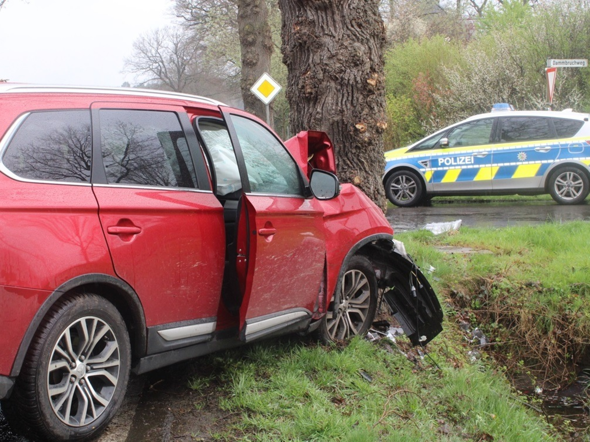 04.04.2024 - 10:34:02 | presseportal.deDen Erkenntnissen nach befuhr der Mann in einem Mitsubishi gegen 9.45 Uhr die Rahdener Straße in Fahrtrichtung der L 770, als er kurz vor der Kreuzung Osterheider Straße / Dammbruchweg auf den rechtsseitigen Grünstreifen geriet. Anschließend kollidierte der Pkw mit einem dort stehenden Baum. Durch den Zusammenstoß verletzte sich der Rahdener schwer und musste mit einem Rettungswagen dem Krankenhaus Lübbecke zugeführt werden. Das stark beschädigte Auto wurde abtransportiert.