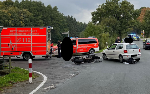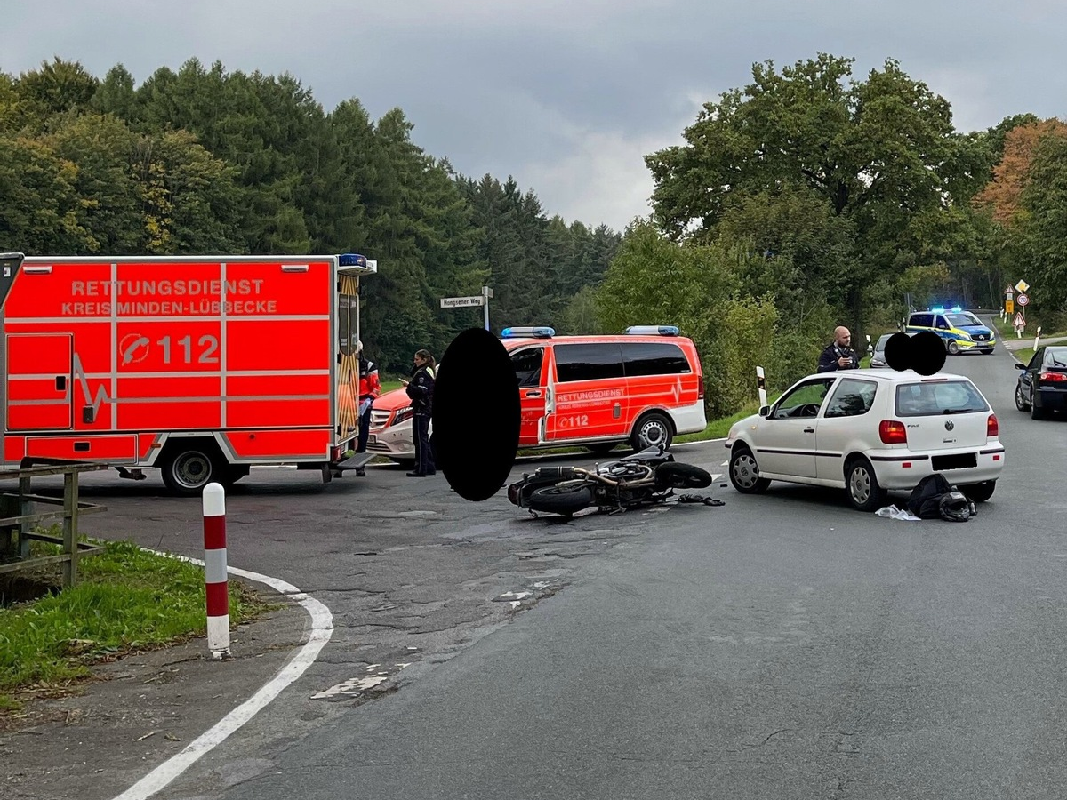 Der Biker stürzte und zog sich leichte Verletzungen zu. Nach einer Erstversorgung durch den Rettungsdienst wurde er ins Krankenhaus Lübbecke gebracht. Bei beiden Fahrzeugen entstanden erhebliche Schäden.