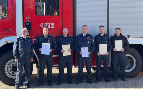 21.02.2024 - 10:47:24 | presseportal.deIm Rahmen des gemeinsamen Übungsdienstes konnten der Sprecher der Freiwilligen Feuerwehr Michael Zihn und der Stellvertretender Leiter der Feuerwehr Christopher Rosenbaum Ehrungen und Bestellungen überbringen.