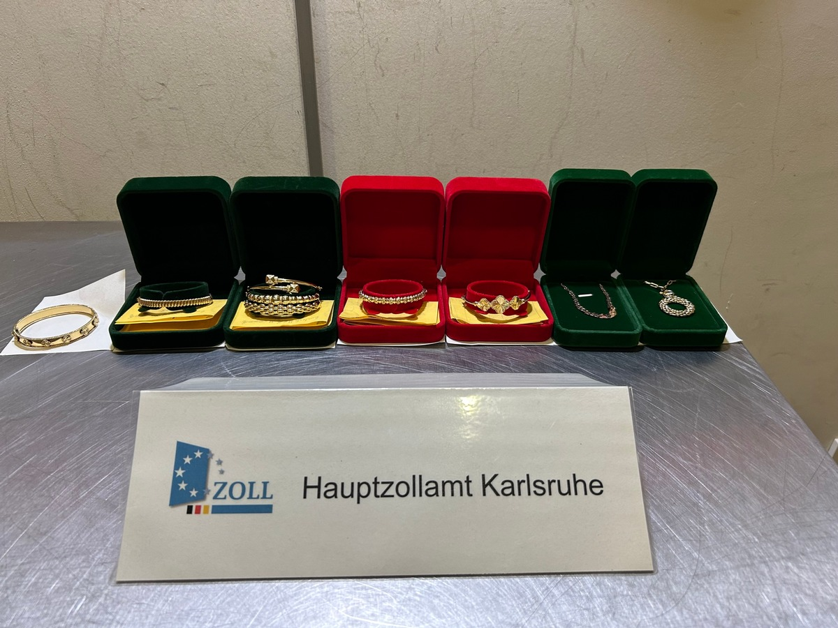 Am Samstag, den 27. September wurden eine Mutter und ihre Tochter am Flughafen Karlsruhe/Baden-Baden einer Kontrolle unterworfen. Die Reisenden waren aus Fez in Marokko gekommen und hatten bei der Einreise den grünen Kanal gewählt. Bei der Überprüfung des Gepäcks konnten insgesamt dreizehn Armreifen und zwei Halsketten aus jeweils 18 Karat Gold festgestellt werden. Der Zollwert der Schmuckstücke betrug nach der Berechnung vor Ort 14.756,05 Euro. Gegen beide Reisenden wurde ein Strafverfahren eingeleitet. Da die Einfuhrabgaben in Höhe von 3.242,65 Euro nicht unmittelbar entrichtet werden konnten, wurden die Schmuckstücke sichergestellt. Die beiden Frauen konnten ihre Reise im Anschluss fortsetzen.