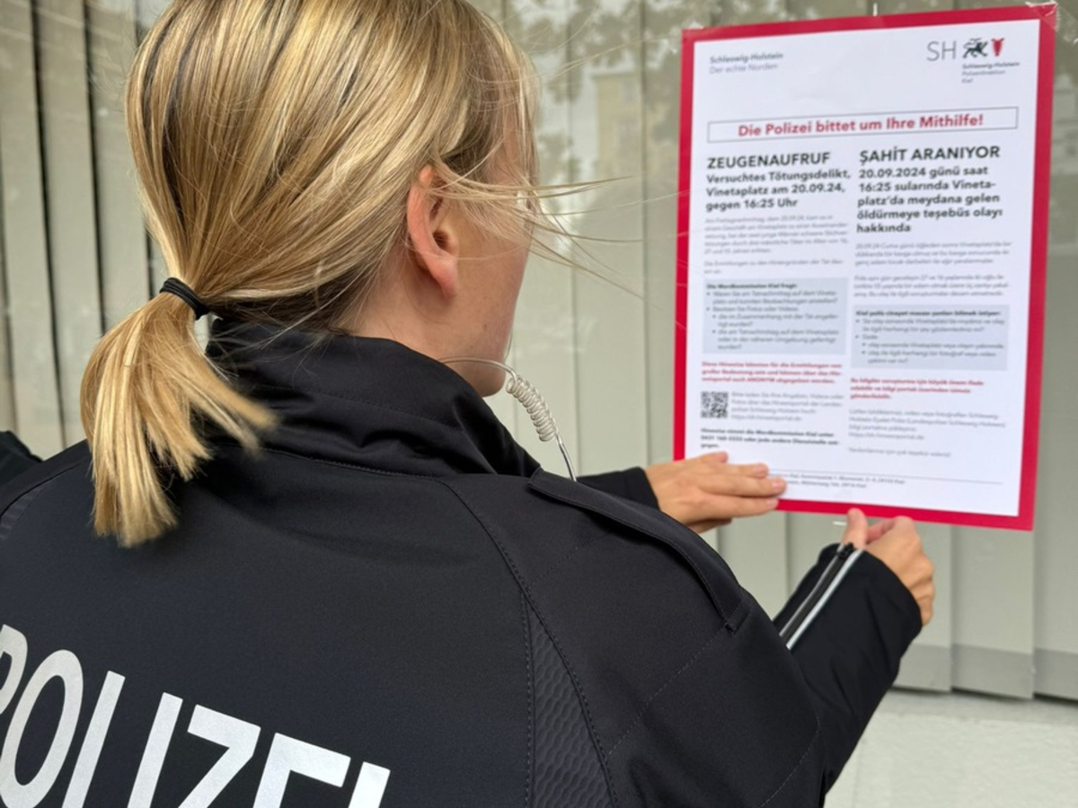 Da erfahrungsgemäß nicht alle Menschen über Presseberichterstattung erreicht werden, hing die Polizei heute mehrsprachige Plakate im Stadtteil auf. Auf diesen besteht die Möglichkeit, über einen QR-Code Aufnahmen der Tat über das Hinweisportal der Landespolizei hochzuladen. Das Hinweisportal ist zudem über folgenden Link erreichbar: https://sh.hinweisportal.de/. Hinweise nimmt die Polizei auch unter der Rufnummer 0431 / 160 3333 entgegen.