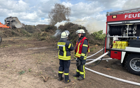 Klein Meckelsen - Am Ostersonntagmittag ist das aufgeschichtete Osterfeuer in der Straße "Zum Schwarzen Kamp" in Klein Meckelsen aus ungeklärter Ursache vorzeitig in Brand geraten.