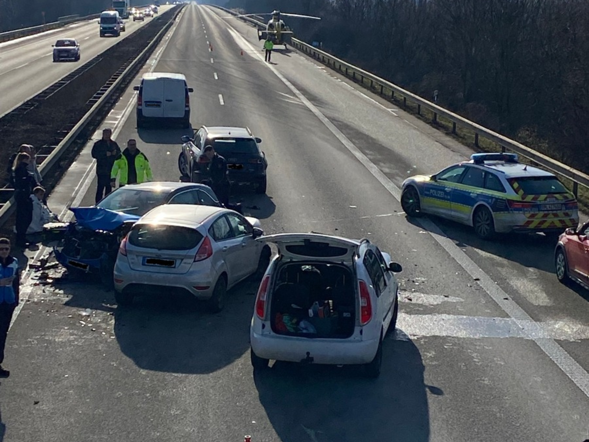 Polizeiautobahnstation Ruchheim Unfall mit mehreren Fahrzeugen, zeitweise Vollsperrung der Autobahn