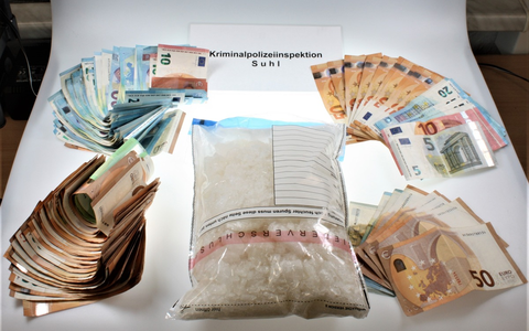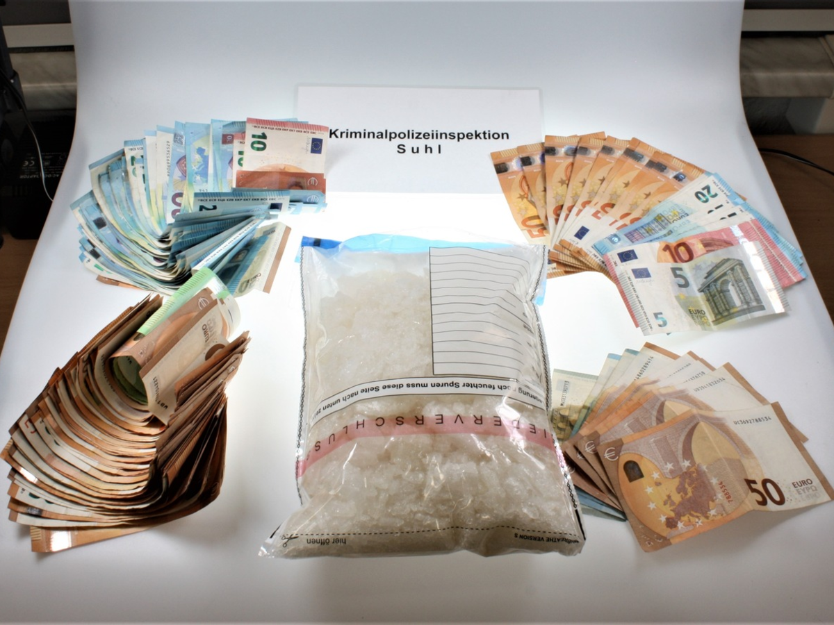 Landkreis Hildburghausen - Im Rahmen von Ermittlungen der Suhler Kriminalpolizei in Bezug auf die Beschaffung von BetĂ€ubungsmitteln konnten EinsatzkrĂ€fte am 06.03.2024 zwei MĂ€nner im Alter von 43 und 36 Jahren, von denen einer im Landkreis Hildburghausen wohnt, hochnehmen. Die Ermittler fanden im Auto der beiden ein Kilogramm Methamphetamin und ĂŒber 5.000 Euro Bargeld. Beides wurde beschlagnahmt und die TĂ€ter vorlĂ€ufig festgenommen. Auch die Durchsuchung bei den MĂ€nnern zuhause nur einen Tag spĂ€ter verlief positiv. Hier konnten in einer der Wohnungen weitere BetĂ€ubungsmittel in nicht geringer Menge und in der anderen mehrere dem Waffengesetz unterliegende GegenstĂ€nde aufgefunden und sichergestellt werden. Die Richterin des Amtsgerichts Meiningen erlieĂ bei der HaftrichtervorfĂŒhrung am Nachmittag des 07.03.2024 Haftbefehle gegen die beiden TatverdĂ€chtigen. Sie kamen in die Justizvollzugsanstalt.