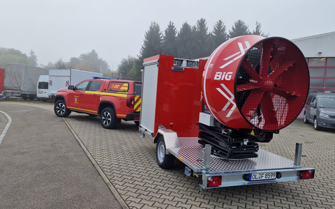 Mit dem neuen Großlüfter steht der Kreisfeuerwehr ein hochmodernes Gerät zur Verfügung, das vor allem bei großen oder komplexen Einsatzlagen wertvolle Dienste leisten wird. Während klassische mobile Kleinlüfter (z. B. auf den Löschfahrzeugen) bei bestimmten Einsatzszenarien - etwa in weitläufigen Gebäuden oder tiefen Bauwerken - bauartbedingt an ihre Grenzen stoßen, kann der neue Großlüfter überall dort eingesetzt werden, wo besonders große Luftmengen bewegt werden müssen. Dazu zählen Industrieanlagen, Hallen, Tiefgaragen, Krankenhäuser, Schulen, aber auch Kellerräume und mehrgeschossige Gebäude.