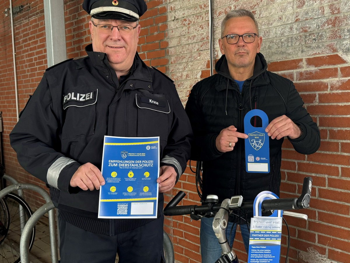 Das PrĂ€ventionsteam der Polizeiinspektion Verden/Osterholz wird diesbezĂŒglich unter anderem am 21.04.2024 beim "Gewerbepark Live" in Oyten sowie am 28.04.2024 anlĂ€sslich der Verdener Veranstaltung "Verden Mobil" zur Sicherung von ZweirĂ€dern vor Ort ansprechbar sein. NatĂŒrlich sind die Kollegen auch zu allen anderen Fragen polizeilicher ZustĂ€ndigkeit ansprechbar.