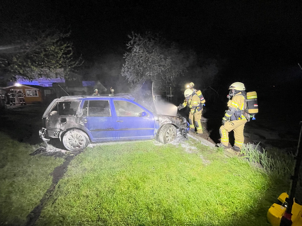 FW Lehrte: Auto brennt im Garten