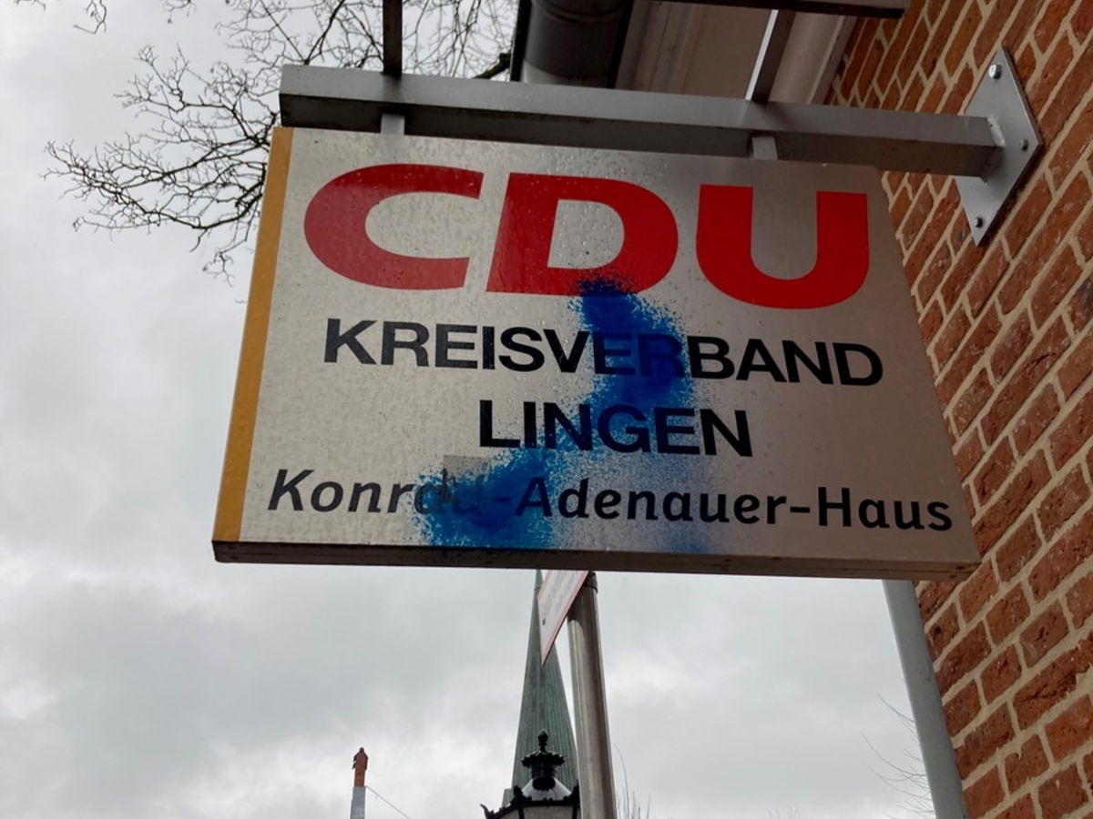 Lingen - Im Zeitraum von Donnerstag, 23.01.2025, auf Freitag, 24.01.2025, kam es am Konrad-Adenauer-Haus in der CastellstraĂe zu einer SachbeschĂ€digung. Hierbei handelt es sich um die KreisgeschĂ€ftsstelle der CDU in der Lingener Innenstadt. Die am GebĂ€ude angebrachte Beschilderung wurde hierbei durch den/die bislang unbekannten TĂ€ter mit blauer Farbe beschmiert. Neben dieser SachbeschĂ€digung an einem GebĂ€ude einer Partei wurden seit Beginn des Wahlkampfes zur Bundestagswahl 2025 im gesamten ZustĂ€ndigkeitsbereich der Polizeiinspektion Emsland / Grafschaft Bentheim zahlreiche SachbeschĂ€digungen an verschiedenen Wahlplakaten aller Parteien registriert. Teilweise wurden Plakate auch ganz entwendet. Zeugen, die sachdienliche Hinweise zu diesen SachbeschĂ€digungen oder der hier beschriebenen Tat in Lingen geben können, werden gebeten, sich mit der Polizei Lingen unter der Telefonnummer 0591-87441 in Verbindung zu setzen./hue