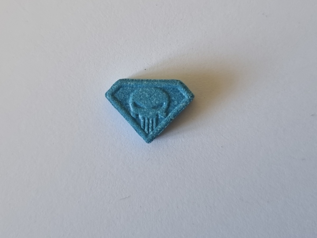 Es handelt sich hierbei um die sogenannte Ecstasy-Tablette "Blue Punisher" die bei der Durchsuchung aufgefunden wurde.