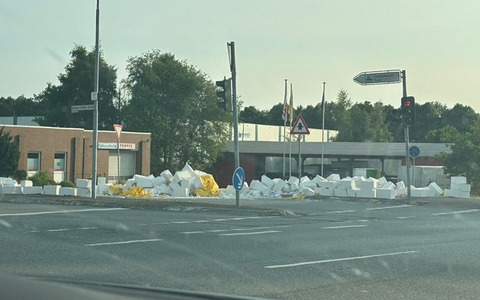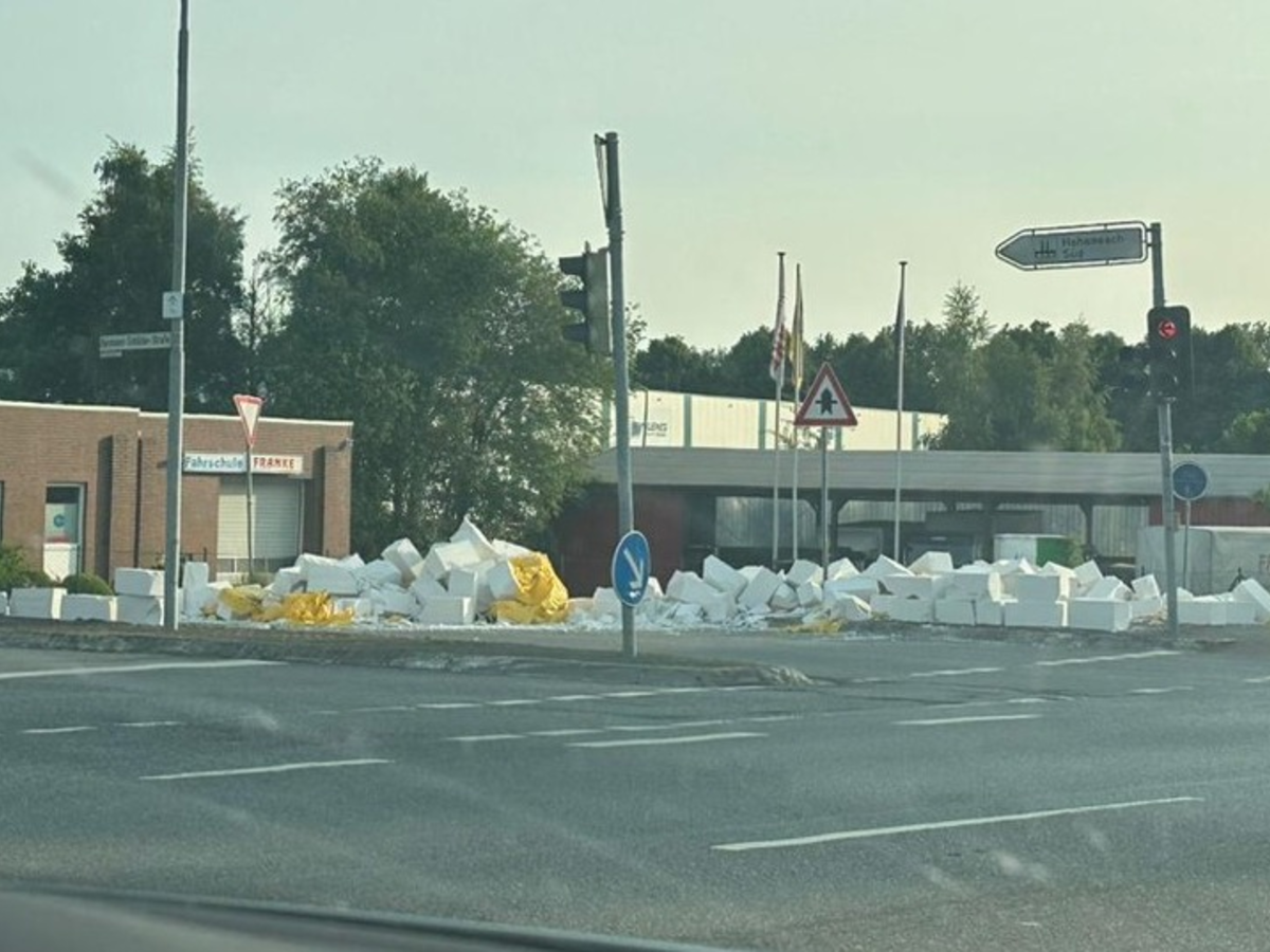 ++Verkehrsunfall Hohenesch++ Rotenburg. Am Samstagabend kam es auf der B 75 in Höhe Hohenesch zu einem Verkehrsunfall. Ein mit Gasbetonsteinen beladener Sattelzug verlor aufgrund mangelnder Ladungssicherung beim Abbiegen einen Großteil der Steine. Am Fahrbahnbelag entstand Sachschaden und die Straße musste für die Reinigungsarbeiten gesperrt werden. (Foto eingestellt)
