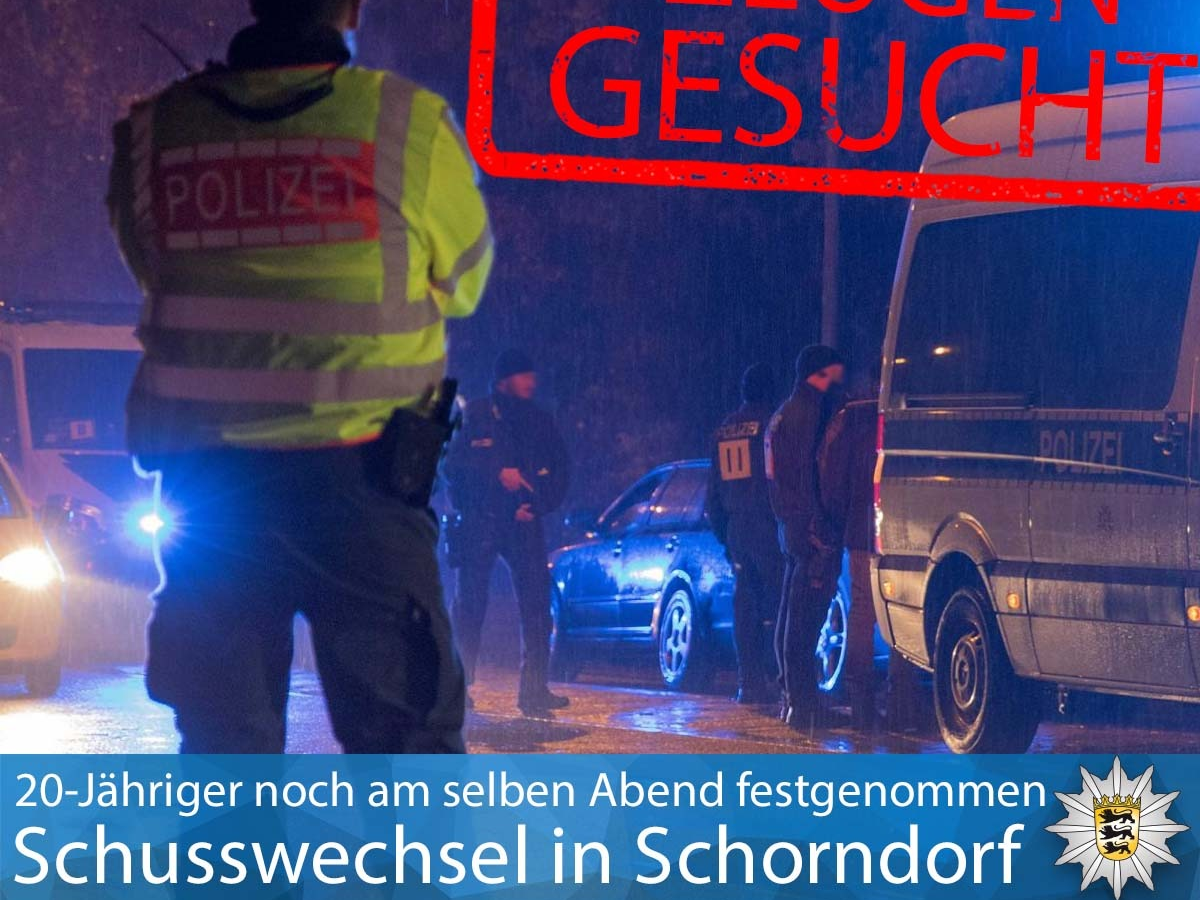 Einige Zeit nach diesen Anrufen betrat ein unverletzter 20-Jähriger das Polizeirevier Schorndorf. Er gab an, dass Unbekannte aus einem Fahrzeug heraus auf ihn geschossen hätten. Sein Auto wies mutmaßliche Einschusslöcher auf.