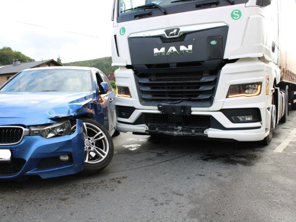 Eitorf - Am Montag (17. Juni) kam es in Eitorf zu einem Verkehrsunfall zwischen Lkw und Pkw, bei dem eine Frau leicht verletzt wurde. Gegen 08:00 Uhr fuhr eine 62 Jahre alte Frau aus Ruppichteroth mit ihrem Auto aus Richtung Bouraueler Straße kommend über die Landesstraße 86 (L86). An der Kreuzung L86/Bahnhofstraße/Harmoniestraße/Zum Gransbach wollte die BMW-Fahrerin nach links in die Bahnhofstraße einbiegen. Dabei nahm sie nach eigenen Angaben zu spät wahr, dass sich von dort ein Lkw näherte. Die 62-Jährige versuchte im letzten Moment noch mit einer Vollbremsung einen Zusammenprall zu verhindern. Auch der ein Jahr ältere Lkw-Fahrer aus Windeck leitete eine Vollbremsung ein, als er den die Vorfahrt missachtenden BMW sah. Dennoch kam es zur Kollision im Kreuzungsbereich, bei welcher der Lkw mit der Front den Pkw an der linken vorderen Seite erwischte. Der entstandene Sachschaden wird auf rund 25.000 Euro geschätzt. Da der BMW nicht mehr fahrbereit war, wurde ein Abschleppunternehmen mit der Bergung beauftragt. Der Lkw konnte seine Fahrt fortsetzen. Während der 63-Jährige unverletzt blieb, verletzte sich die Autofahrerin leicht und begab sich nach der polizeilichen Unfallaufnahme eigenständig in ärztliche Untersuchung. Die Polizei fertigte eine Verkehrsunfallanzeige gegen die Ruppichterotherin. (Uhl)