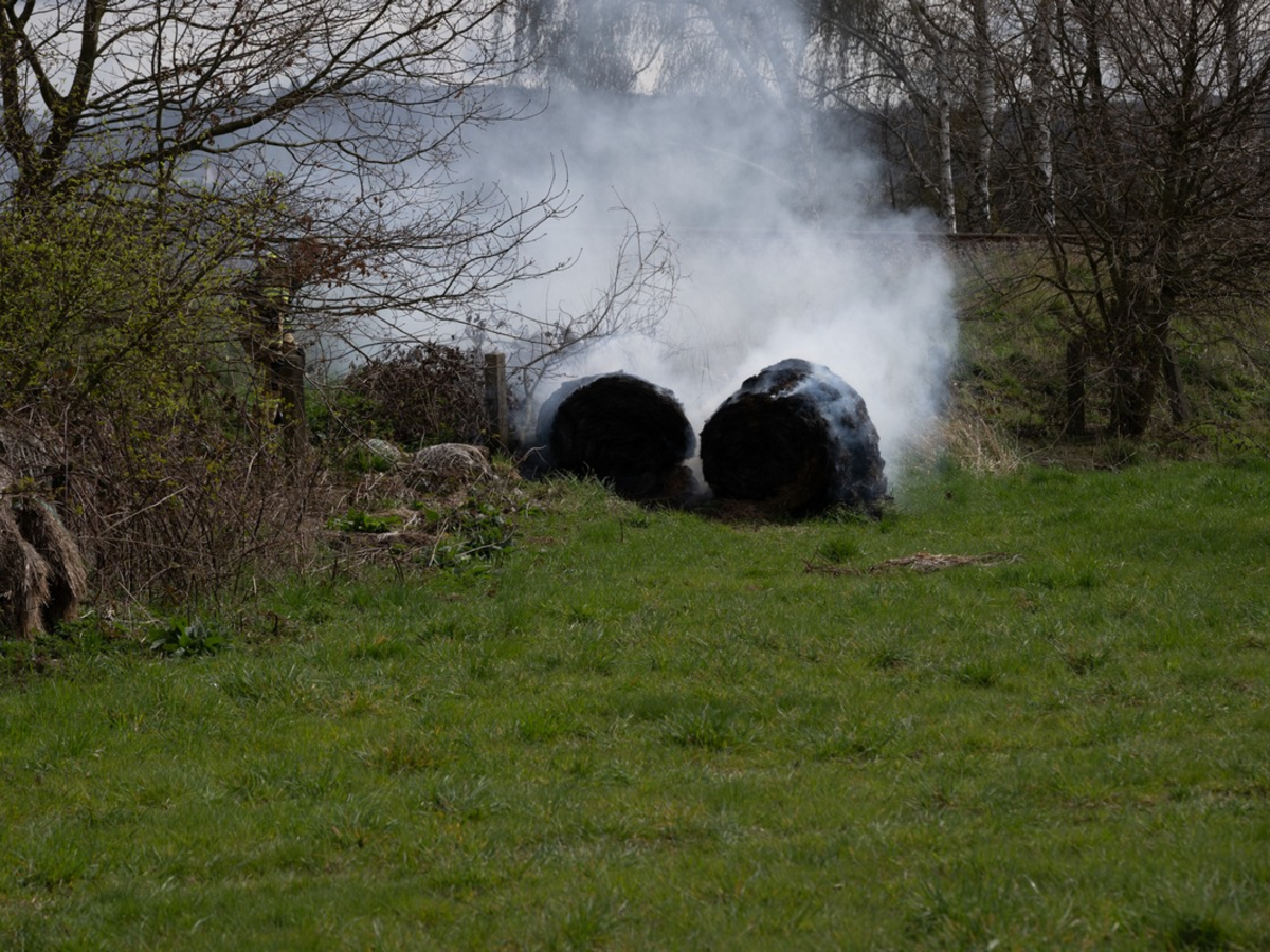 Bei Eintreffen der Einsatzkräfte bestätigte sich die gemeldete Lage: Zwei Rundballen waren in Brand geraten. Die Einsatzkräfte begannen umgehend mit der Brandbekämpfung. Mit dem Schnellangriffsrohr des Hilfeleistungslöschfahrzeugs (HLF) sowie zwei Dunghaken, mit denen die brennenden Ballen auseinandergezogen wurden, konnte das Feuer rasch unter Kontrolle gebracht werden.