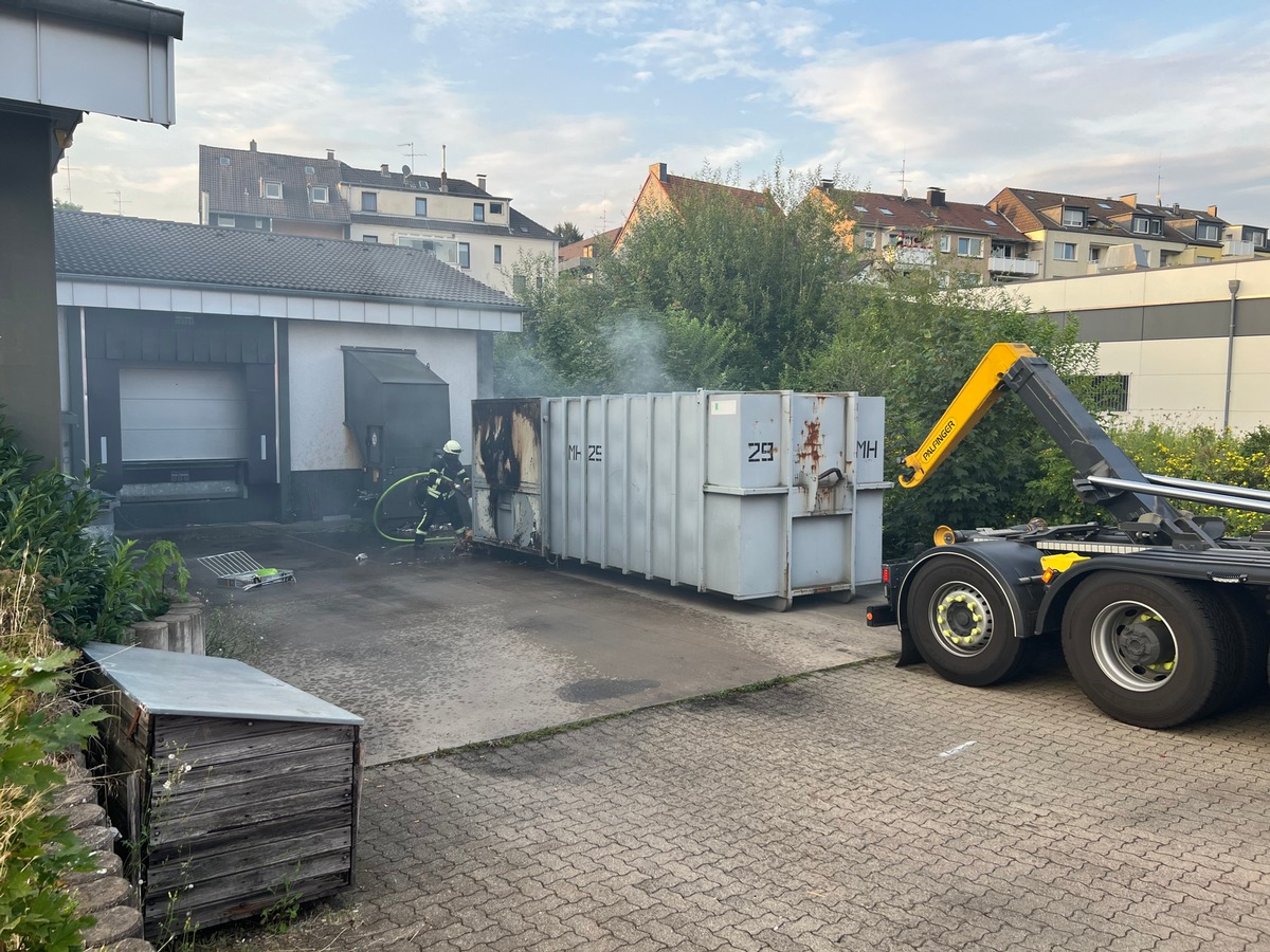 Mülheim an der Ruhr - Am Mittwochabend gegen 19:45 Uhr erreichte die Leitstelle der Feuerwehr Mülheim ein Notruf. In der Ladezone eines Supermarktes im Bereich der Heißener Straße sollte ein großer Altpapiercontainer brennen. Durch die Leitstelle wurde daraufhin zunächst ein Tanklöschfahrzeug der Feuerwache 1 zur Einsatzstelle entsandt. Die Einsatzkräfte fanden vor Ort einen rund 30 Kubikmeter fassenden Großcontainer vor, aus dem bereits dichter Brandrauch drang. In Folge des Brandereignisses zog bereits Brandrauch in die Lagerbereiche und die Verkaufsräume des angrenzenden Supermarktes. Durch die Einsatzkräfte vor Ort wurde umgehend ein Löschangriff vorbereitet und weitere Einsatzkräfte nachgefordert. Mit Hilfe eines speziellen Wechselladerfahrzeuges der Feuerwehr konnte der brennende Container aufgenommen und vom Gebäude weg gezogen werden. Der brennende Inhalt des Containers wurde ausgekippt und schrittweise abgelöscht. Ein Übergreifen des Brandes auf das Gebäude konnte verhindert werden. Aufgrund mehrerer Glutnester und kleinerer Brandstellen im Inneren des Containers musste dieser vollständig entleert und das Brandgut schrittweise auseinander gezogen und abgelöscht werden. Durch diese Maßnahme konnten nach rund 90 Minuten alle Glutnester gelöscht werden.