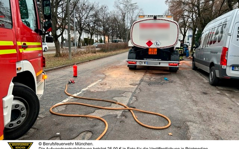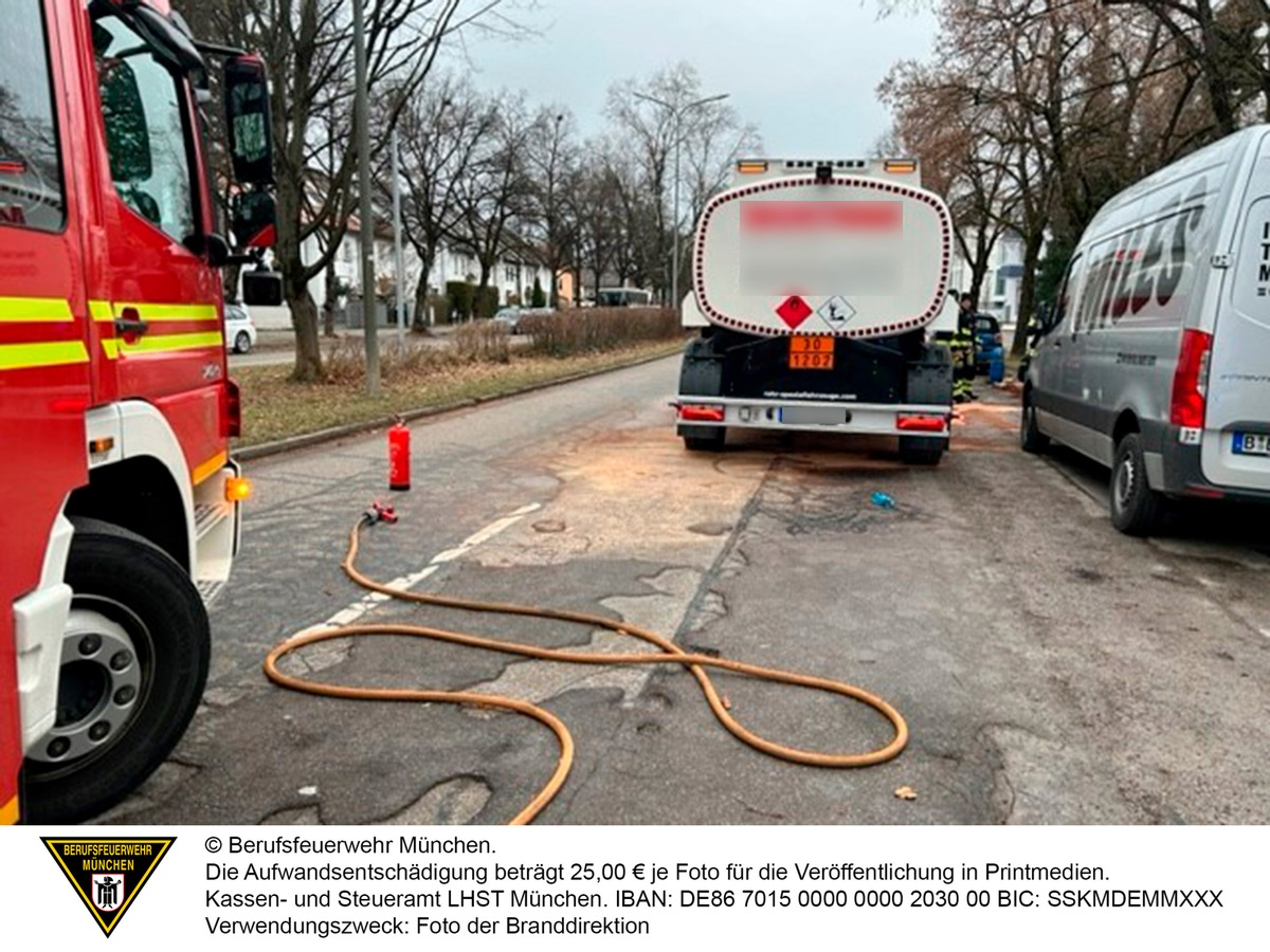 FW-M: Tankanhänger verliert Heizöl (Obersendling) - Foto: presseportal.de