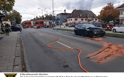 FW-M: Zusammenstoß im Kreuzungsbereich - Pkw fängt Feuer (Sendling-Westpark)