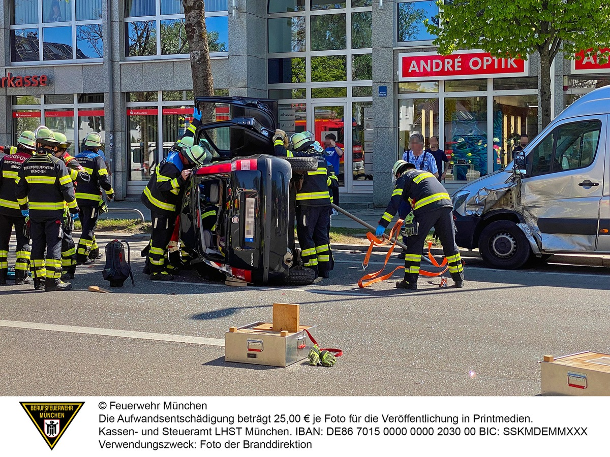 Von zahlreichen Passantinnen und Passanten beobachtet, ereignete sich am Mittwochnachmittag ein Unfall mit drei Fahrzeugen auf in Waldtrudering. Eines der Unfallfahrzeuge, ein Fiat, blieb auf der Seite liegen, ein VW und ein Mercedes waren ebenfalls beteiligt. Dabei wurden auch weitere am Straßenrand geparkte Fahrzeuge beschädigt.
