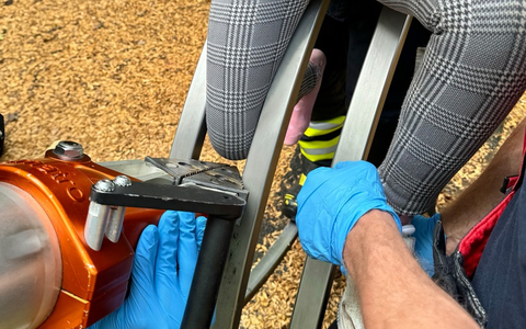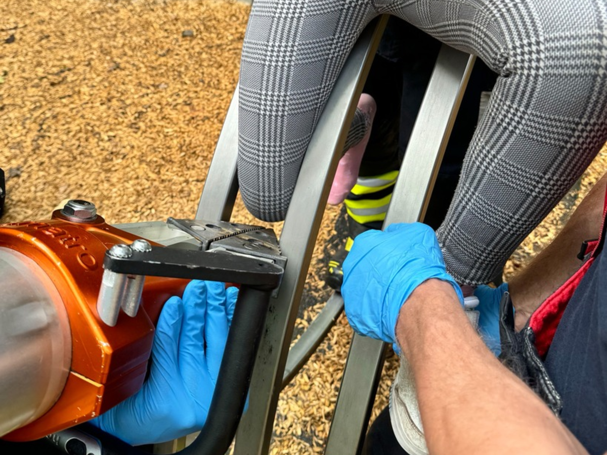 Das Mädchen war beim Spielen zwischen zwei Metallrohre eines Spielgeräts gerutscht. Durch den Druck der Rohre war das Bein angeschwollen und das Kind konnte sich nicht mehr selbst befreien. Die Besatzung des Hilfeleistungslöschfahrzeugs betreute die tapfere Neunjährige bis zum Eintreffen des Rettungsdienstes. Dann wurden die Metallrohre mittels hydraulischem Spreizer aufgebogen und das Mädchen aus seiner misslichen Lage befreit.