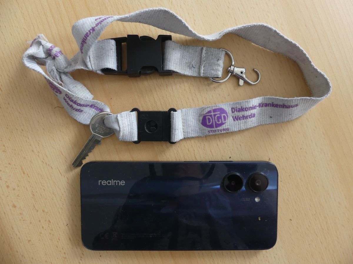 02.07.2024 - 13:23:39 | presseportal.deLauterbach. In der vergangenen Woche wurde im Stadtgebiet Lauterbach - im Bereich des Parkplatzes "An der Bleiche" - ein Schlüsselbund mit der Aufschrift "Diakonie Krankenhaus Wehrda" sowie ein Smartphone der Marke "realme" aufgefunden (siehe Bild).