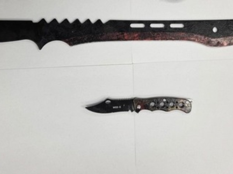 07.01.2026 - 11:31:06Der Grund für die Flucht war schnell klar: Es handelte sich bei um zwei Jugendliche im Alter von 13 und 14 Jahren. Der Jüngere hatte unter seiner Jacke eine Machete mit einer Klingenlänge von 40 cm versteckt (siehe Bild). Bei dem 14-Jährigen wurde in der Hosentasche ein Einhandmesser gefunden.