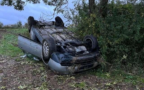 In einer Linkskurve kam er aus bislang ungeklärter Ursache von der Fahrbahn ab. Hierbei überschlug sich der Pkw und blieb ca. 160 Meter weiter auf einem angrenzenden Feld auf dem Dach liegen.