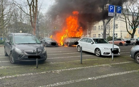 Noch auf der Anfahrt konnte beim Abbiegen auf die Mülheimer Straße eine größere Rauchwolke bestätigt werden. Bei Ankunft hatte der Brand bereits auf benachbart geparkte Fahrzeuge übergegriffen. Der Brand konnte durch die eingeleiteten Löschmaßnahmen schnell gelöscht sowie eine weitere Ausbreitung unterbunden werden. Während der ersten Einsatzmaßnahmen kam es immer wieder zu lauten Knallgeräuschen, weil Spraydosen und Reifen explodierten. Die mitgeführten zwei Propangasflaschen konnten rechtzeitig durch die Feuerwehr aus dem Wohnmobil geborgen und in Sicherheit gebracht werden. Bewohner der direkt anliegenden Wohnhäuser wurden frühzeitig durch die Polizei aufgefordert die Fenster zu schließen. Vorsorglich wurde auch das in der Nähe liegende Krankenhaus telefonisch über den Einsatz in Kenntnis gesetzt. Der Vater und seine zwei Kinder waren unverletzt und mussten nicht ins Krankenhaus.