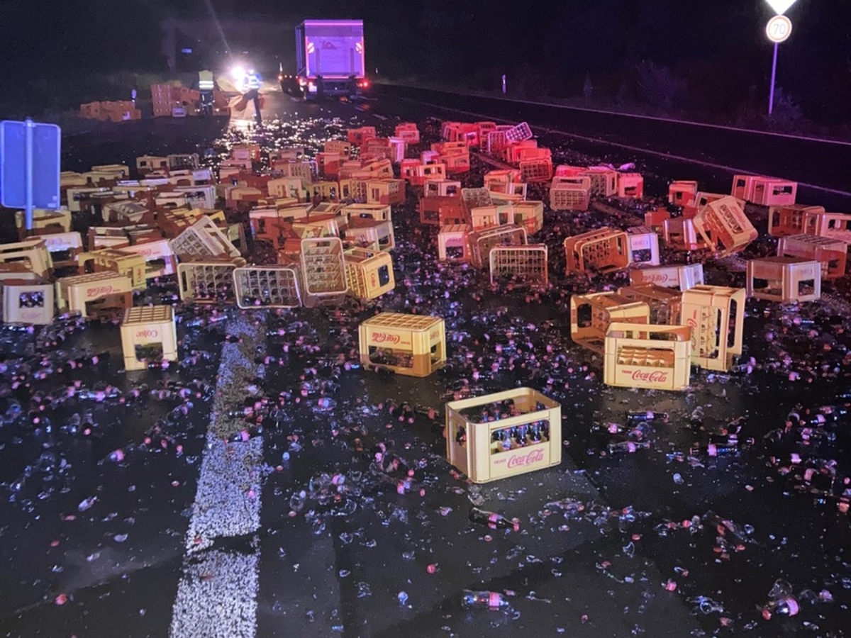Offene Tür: Lkw verliert 150 Kisten Cola