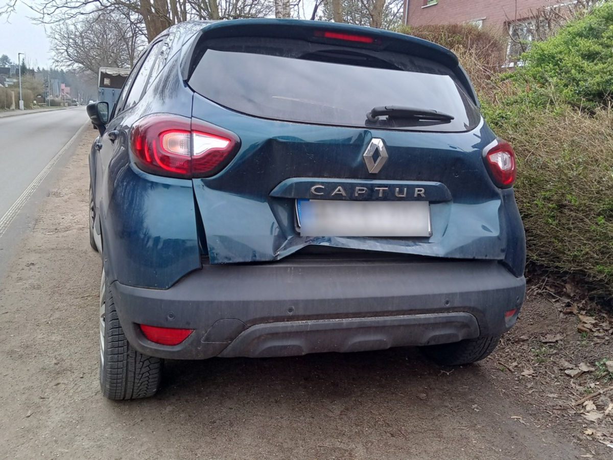 Am 09.03.2024 um 13.00 Uhr entschloss sich eine 42-jährige Berlinerin, ihren PKW auf dem Parkplatz des örtlichen Edeka Marktes in Hutzfeld abzustellen. Der blaue Renault wurde in der ersten Reihe an der Seite der Landstraße 176, zur Seite der dortigen Altkleidercontainer, abgestellt. Als die Frau am Dienstag (12. März 2024) ihren PKW wieder nutzen wollte, musste sie feststellen, dass der Captur eine starke Beschädigung an der Heckklappe aufwies. Ein Hinweis von einem Verursacher des Verkehrsunfalls wurde nicht hinterlassen.
