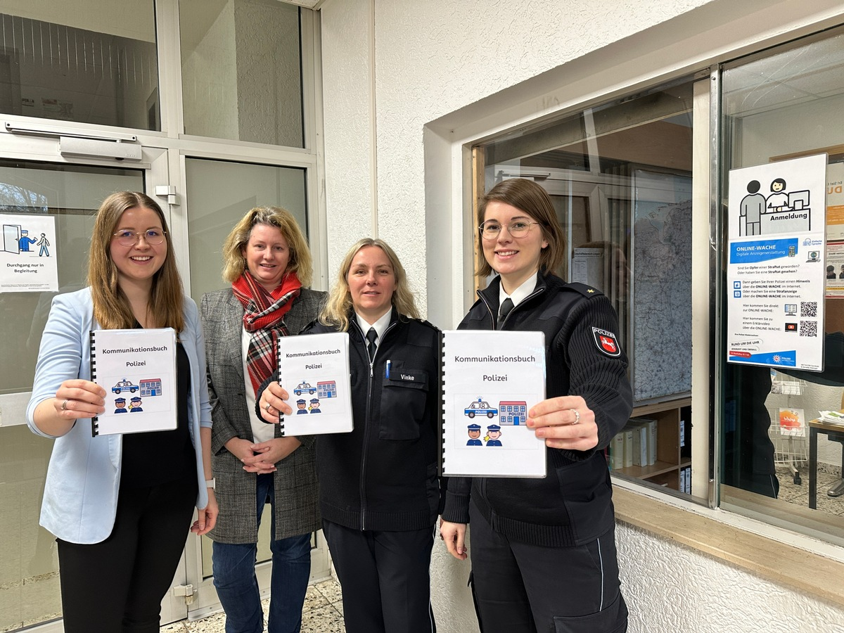 Papenburg - Wie kann die Polizei Menschen helfen, wenn sie aufgrund geistiger oder sprachlicher BeeintrĂ€chtigungen nicht oder nur eingeschrĂ€nkt in der Lage sind, sich verbal auszudrĂŒcken? Helfen kann dabei ab sofort ein kleines Kommunikationsbuch mit Symbolen. Es wurde gemeinsam in Papenburg entwickelt. Mehrere Exemplare von der St. Lukas Leben erleben wurden im Rahmen einer Schulung nun an das Polizeikommissariat Papenburg ĂŒbergeben. In dem mehrseitigen Heft sind viele sogenannte METACOM-Symbole zu unterschiedlichen Themen enthalten. METACOM ist ein professionell und speziell fĂŒr die Kommunikation gestaltetes Symbolsystem fĂŒr den deutschsprachigen Raum sowie benachbarte europĂ€ische LĂ€nder. Die Symbole sind prĂ€gnant, kontrastreich und helfen bei sprachlichen Barrieren. Durch das Zeigen auf die Symbole können GesprĂ€che initiiert, Ereignisse kommentiert oder Fragen gestellt werden. So ist Kommunikation auch möglich, auch wenn man nicht die gleiche Sprache spricht. "Barrierefreie Kommunikation ist ein Menschenrecht und ist in der UN-Konvention verankert. Jeder von uns kann und sollte einen Teil zur barrierefreien und inklusiven Gesellschaft beitragen.", sagte Sarah Wessels wĂ€hrend der Schulung von 15 Beamtinnen und Beamten in der Papenburger Polizeidienststelle. Sie ist in der bei St. Lukas Leben erleben als Beauftragte fĂŒr Gelingende Kommunikation (GK) zustĂ€ndig. Seit 2019 Von 2019 bis 2023 wurde wird Gelingende Kommunikation ĂŒber ein von der Aktion Mensch gefördertes Projekt in den Sozialraum getragen. So entstand aus vorheriger Zusammenarbeit von St. Lukas Leben erleben mit dem Polizeikommissariat Papenburg die Idee zur Entwicklung des Kommunikationsbuches und des Schulungsangebotes fĂŒr die Beamten. "Kommunikation ist der SchlĂŒssel fĂŒr ein gutes Miteinander. Dieses Kommunikationsbuch ist eine gute Hilfe beim Dienst unserer Beamtinnen und Beamten fĂŒr alle BĂŒrgerinnen und BĂŒrger.", sagte die PolizeirĂ€tin Sina Butke, Leiterin des Polizeikommissariats Papenburg. Im ersten Schritt sollen die BĂŒcher in zentralen Bereichen der Dienststelle wie der Wache und der Anzeigenaufnahme sowie im Streifendienst genutzt werden.