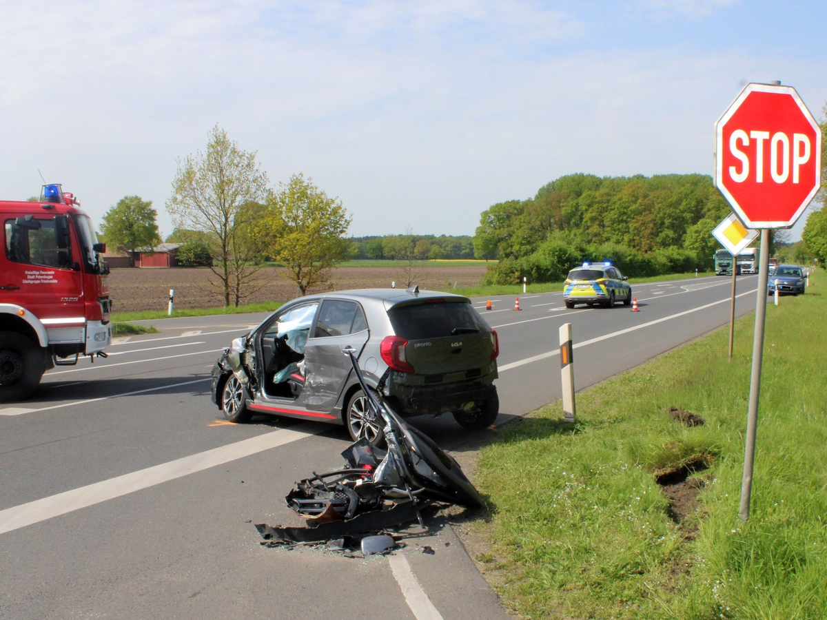30.04.2024 - 15:06:57 | presseportal.deBisherigen Erkenntnissen zufolge befuhr ein 51-Jähriger mit seinem Ford Ranger gegen 10:40 Uhr die Wegholmer Straße aus Friedewale kommend in Richtung der L 770. Hier hielt der Mindener zunächst an. Als er in den Kreuzungsbereich einfuhr, kollidierte er mit einem Kia der auf der L 770 in Richtung Espelkamp fuhr, an dessen Steuer eine 58-jährige Frau aus Bad Eilsen saß. Die Kia-Fahrerin zog sich hierbei leichte Verletzungen zu und wurde mittels Rettungswagen den Klinikum Minden zugeführt.