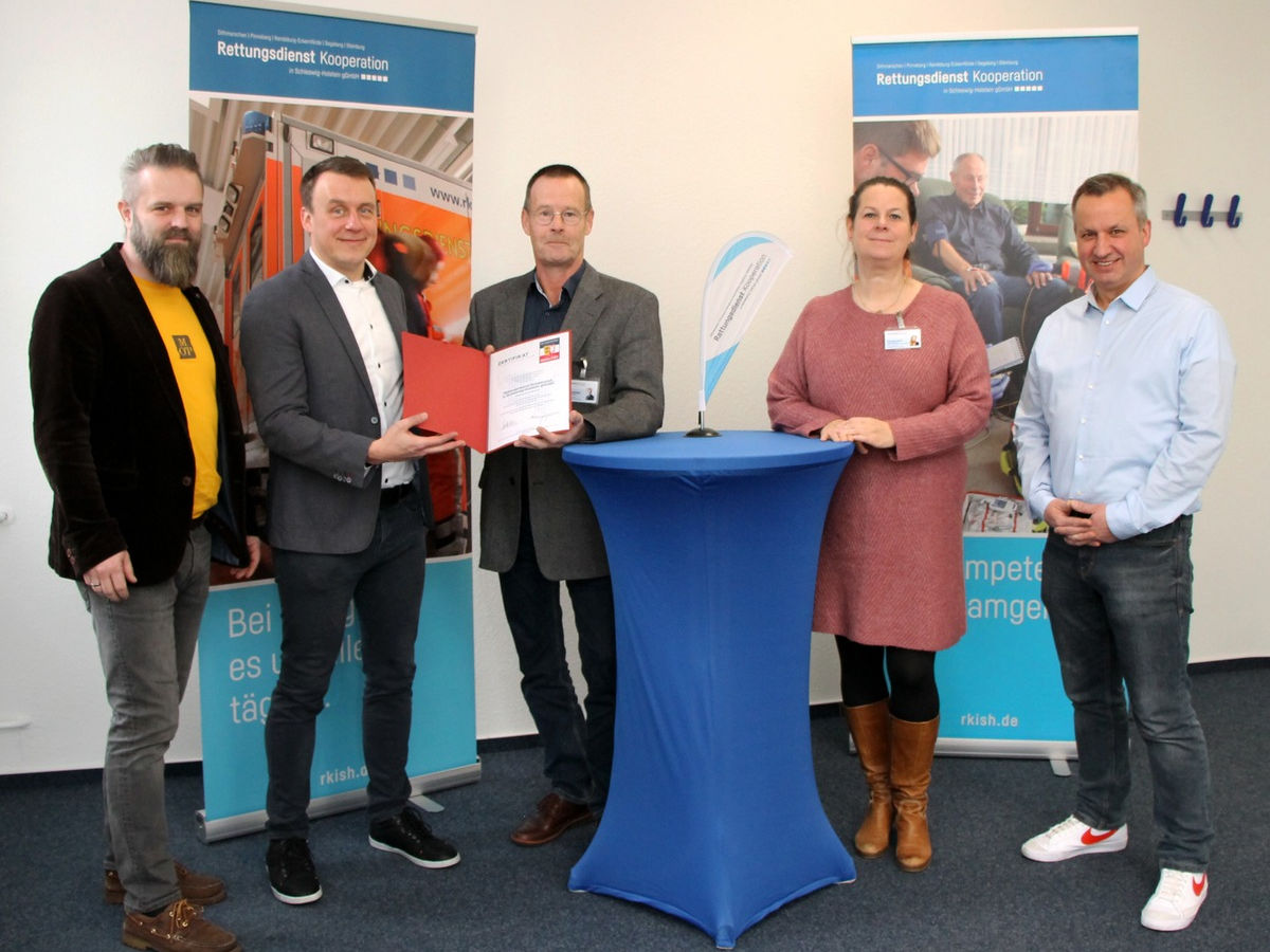 "Das Ergebnis ist sehr erfreulich und es ist gut, dass der Blick von außen stattfindet. So können wichtige Erkenntnisse gewonnen und in konkrete Maßnahmen umgesetzt werden", lobte der stellvertretende Geschäftsführer der RKiSH, Jan Osnabrügge. "Es freut uns, dass wir unter den ersten drei Rettungsdiensten des Landes sind, die das Zertifikat jetzt verliehen bekommen haben."