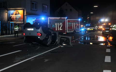 Pkw landet nach Unfall auf dem Dach - beide Insassen sind verletzt -#polsiwi