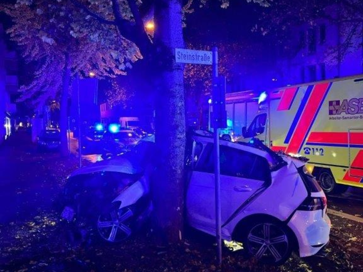 Am Sonntag, 05.11.2023, gg. 00:37 Uhr, befuhr ein 30-jähriger VW-Fahrer die Urbanstraße in stadteinwärtiger Richtung. Auf Höhe von Geb. Nr 1 kam er vermutlich aufgrund weit überhöhter Geschwindigkeit auf gerader Strecke nach rechts von der Fahrbahn ab. Der Pkw prallte gegen einen dort befindlichen Baum. Der Aufprall war so heftig, dass der allein im Fahrzeug befindliche Fahrer eingeklemmt wurde. Er musste durch die Feuerwehr befreit werden. Im Krankenhaus wurde beim Fahrer der Bruch des Wadenbeins diagnostiziert. Über weitere Verletzungen ist momentan noch nichts bekannt. Lebensgefahr besteht aber nach ersten Erkenntnissen nicht. Zur Ermittlung des Unfallhergangs wurde ein Sachverständiger hinzugezogen. Da bei dem Fahrer der Verdacht bestand, dass er unter Einfluss von berauschenden Mitteln stand, wurde eine Blutprobe bei ihm entnommen. Einen Führerschein konnte man ihm nicht abnehmen, da er nicht im Besitz eines solchen war. Der durch den Unfall entstandene Schaden am Pkw und der Randbebauung dürfte im Bereich von 25.000 Euro liegen.