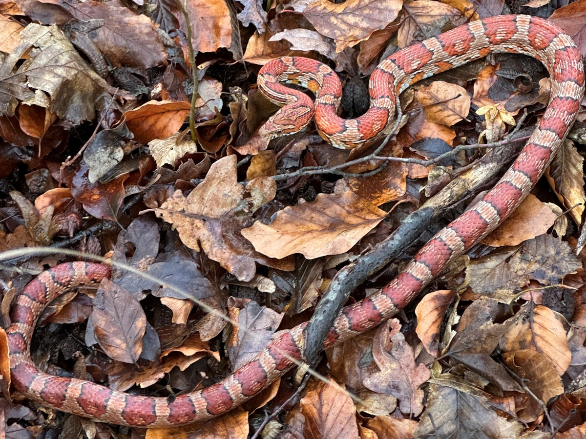 Bereits am 03.01.24, gegen 13:00 Uhr, wurde durch eine Spaziergängerin am "Oderwaldparkplatz" an der L 495 eine Schlange aufgefunden. Durch die Polizei Wolfenbüttel wurde zunächst Rücksprache mit einem Experten der Schlangenfarm in Schladen gehalten. Anhand von Fotos konnte dieser die Schlange als Kornnatter identifizieren. Diese sei ungiftig, in Deutschland allerdings nicht heimisch. Zudem gab er an, dass es für die Kornnatter bei unter 10°C deutlich zu kalt sei und diese zu erfrieren drohe. Das Tier wurde durch die Beamten gesichert und zur Schlangenfarm transportiert, wo sie seitdem leben kann.