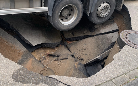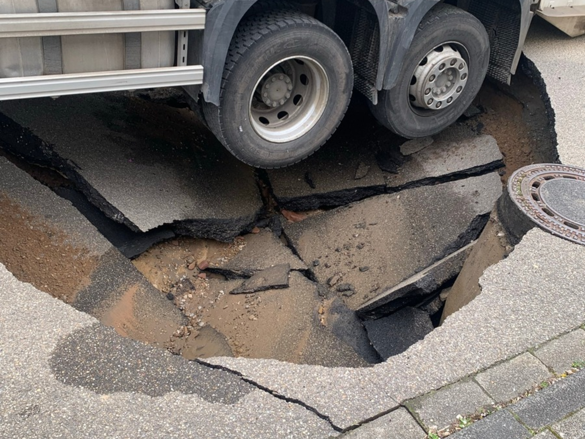 Wiesenbach/ Rhein-Neckar-Kreis: Lastwagen fällt in tiefes Straßenloch