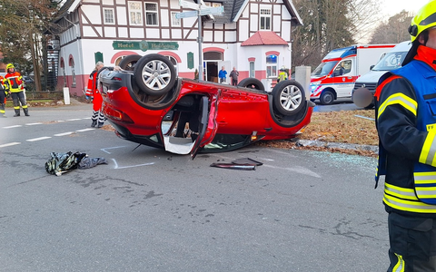Durch die Kollision wurde der Renault auf das Dach geschleudert. Alle drei Unfallbeteiligten erlitten leichte Verletzungen und wurden zur weiteren Behandlung in umliegende Krankenhäuser gebracht.