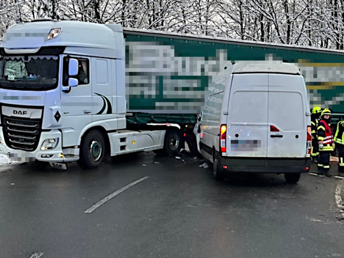Transporter prallt in Sattelzug - Feuerwehr befreit verletzten Fahrer aus dem Fahrzeug