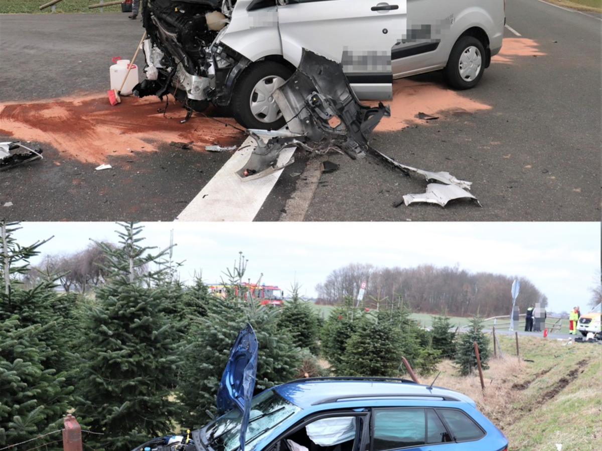 Vorfahrt missachtet - Schülerverkehr-Kleinbus gegen Pkw - Sieben teils schwer verletzte Insassen