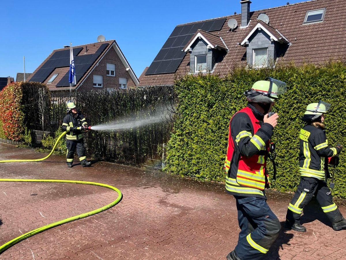06.04.2025 - 21:38:05 | presseportal.deVor Ort brannten etwa 20 Quadratmeter einer Hecke. Die Einsatzkräfte gingen mit zwei C-Rohren vor und konnten das Feuer zügig unter Kontrolle bringen.