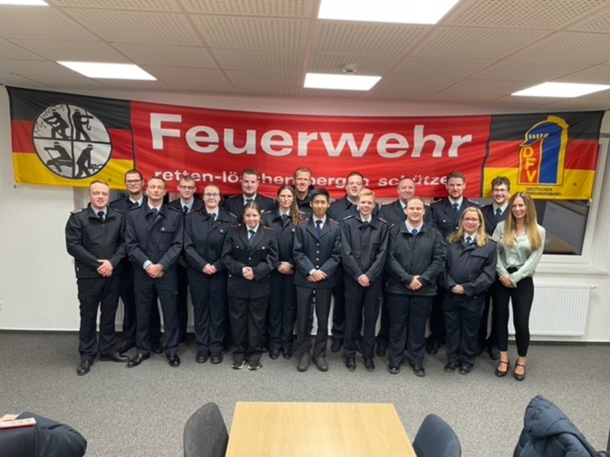 Im Anschluss an die Berichte der Fachwarte und den Wahlen der verschiedenen Ämter, kam der Ortsbrandmeister zusammen mit seinem Stellvertreter Jan-Niklas Radtke zu den Beförderungen. Anne Wagner, Christina Bruns und Johanna Prediger wurden zur Feuerwehrfrau, Michel Jin wurde zum Feuerwehrmann befördert. Kristin Schüler wurde Oberfeuerwehrfrau, Helge Rademacher und Markus Künning wurden zum Hauptfeuerwehrmann befördert. Den Dienstgrad des Oberlöschmeisters erhielt Jugendfeuerwehrwart Claas Molzen. Eine Ehrung für die meiste Dienstteilnahme erhielt Helge Rademacher. Philipp und Lennart Ketteler wurden für ihre 10-jährige, Brix Koop, Niklas Westphal und Jan-Niklas Radtke für ihre 15-jährige Mitgliedschaft in der Ortsfeuerwehr geehrt. Zum Schluss wurden zwei Kameraden der Altersabteilung geehrt, die der Ortsfeuerwehr bereits seit 50 Jahren die Treue halten: Volker Bötticher und Klaus von Hollen.