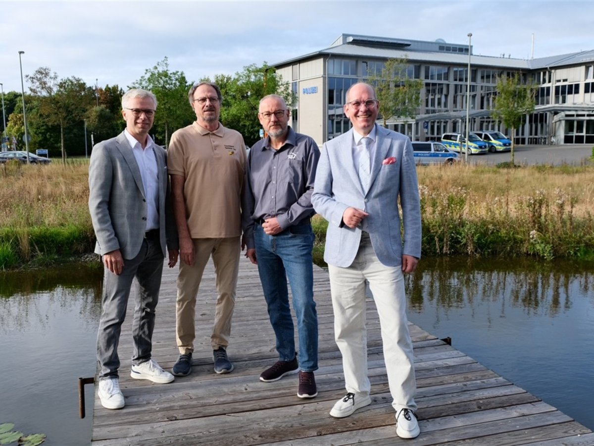 Bild (v.l.n.r.): Kriminalhauptkommissar Guido Baratella, Tischlermeister Jochen Temme, der Vorstandsvorsitzende der Schutzgemeinschaft Thomas Rüterbories und Alexander Kosta von der Kreishandwerkerschaft